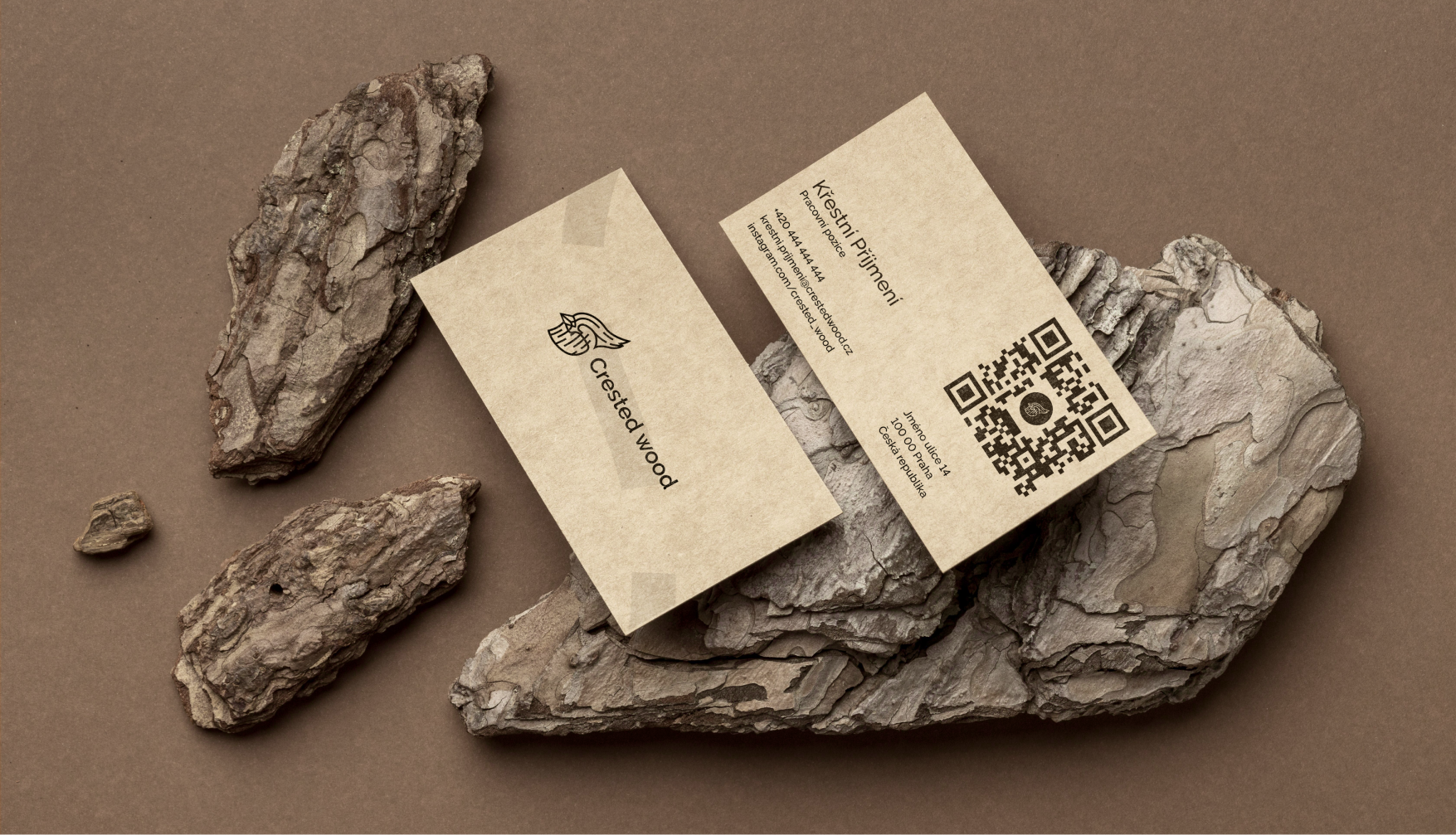 Klientem byl truhlář s příjmením Chocholouš, což rovnou inspirovalo název i vizuální směr značky. Navrhl jsem logo ve tvaru stylizované ptačí hlavy – „dřevěného“ chocholouše – které odkazuje na ruční práci, masivní materiály a detail řemesla. Vizuální identitu doplňuje zemitá barevná paleta a organický motiv praskliny ve dřevě. Značka působí profesionálně, ale zůstává autentická a osobní. Přesně jako její zakladatel.